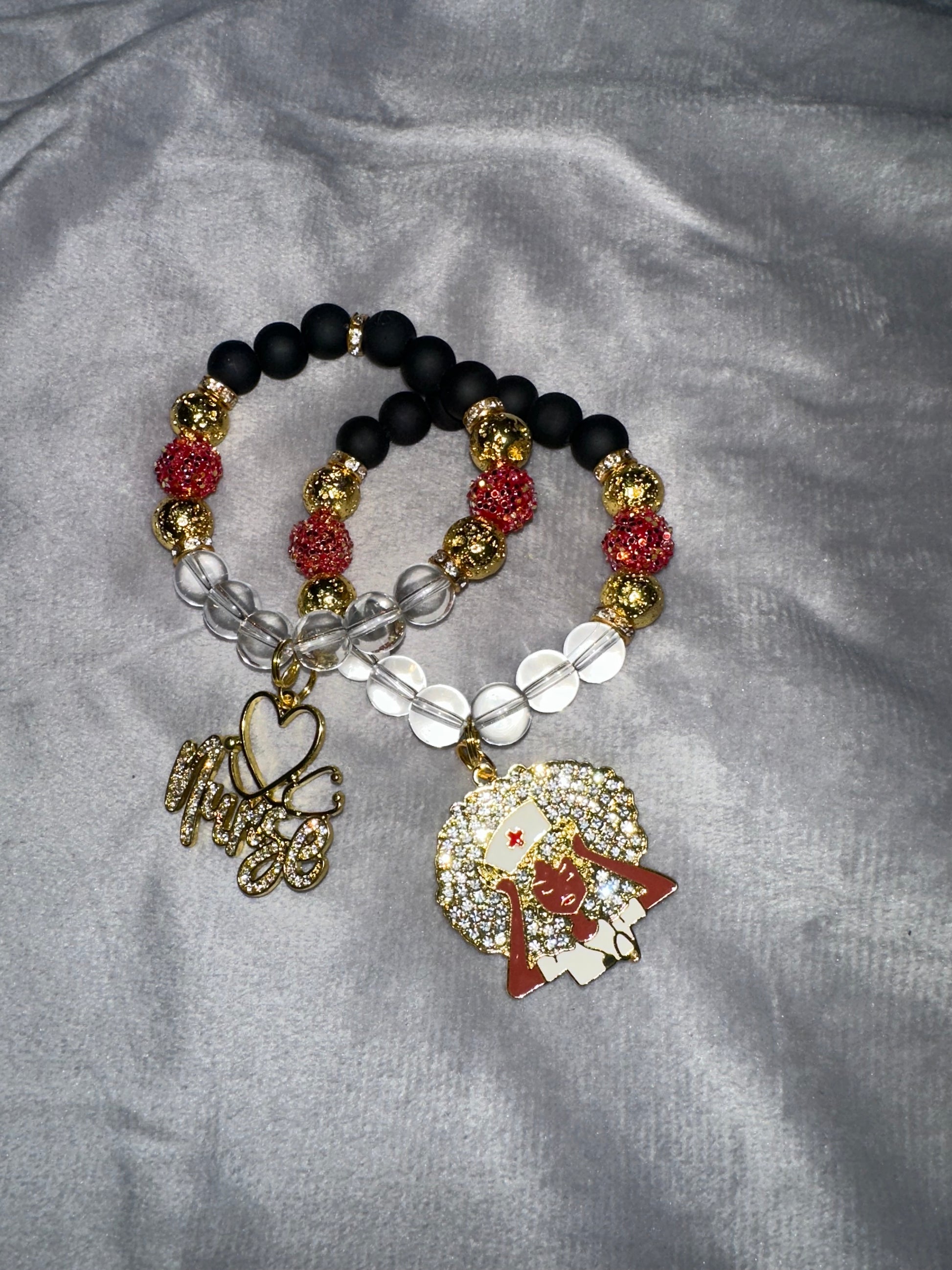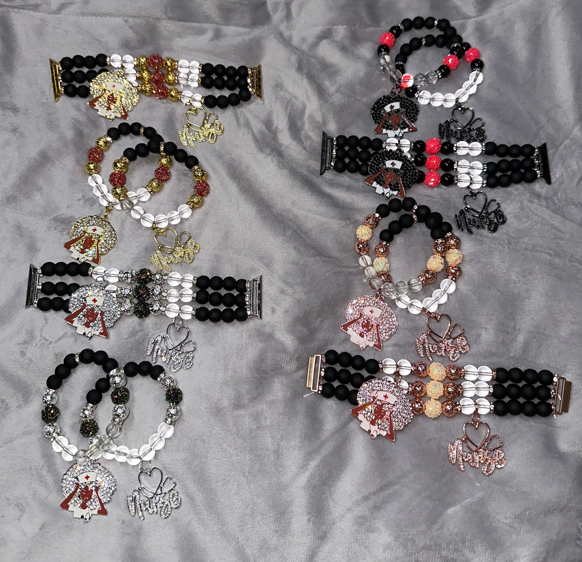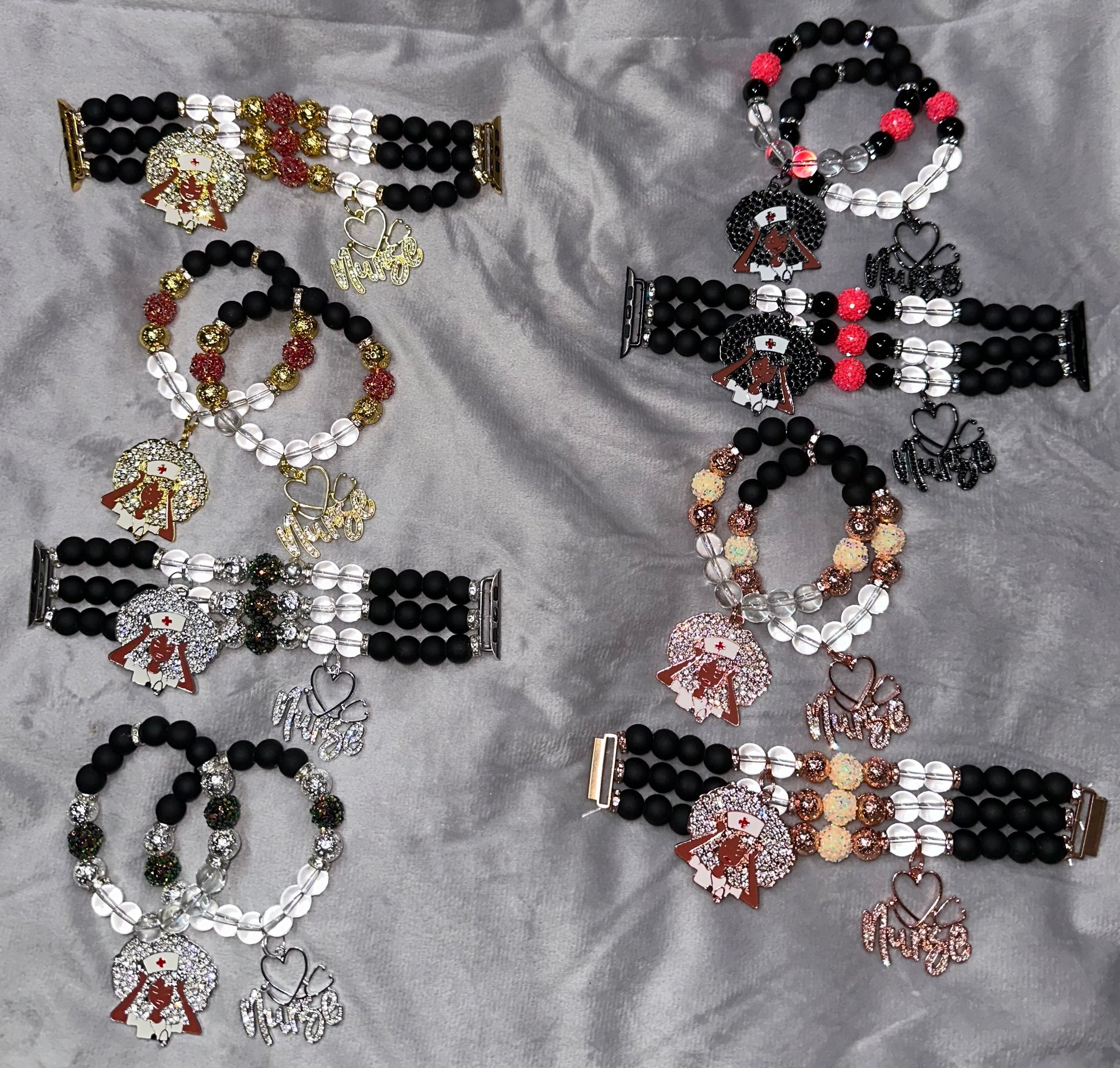 Your choice of a 2 piece set with 2 gold base charms or a watch band with 2 gold base charms or both!