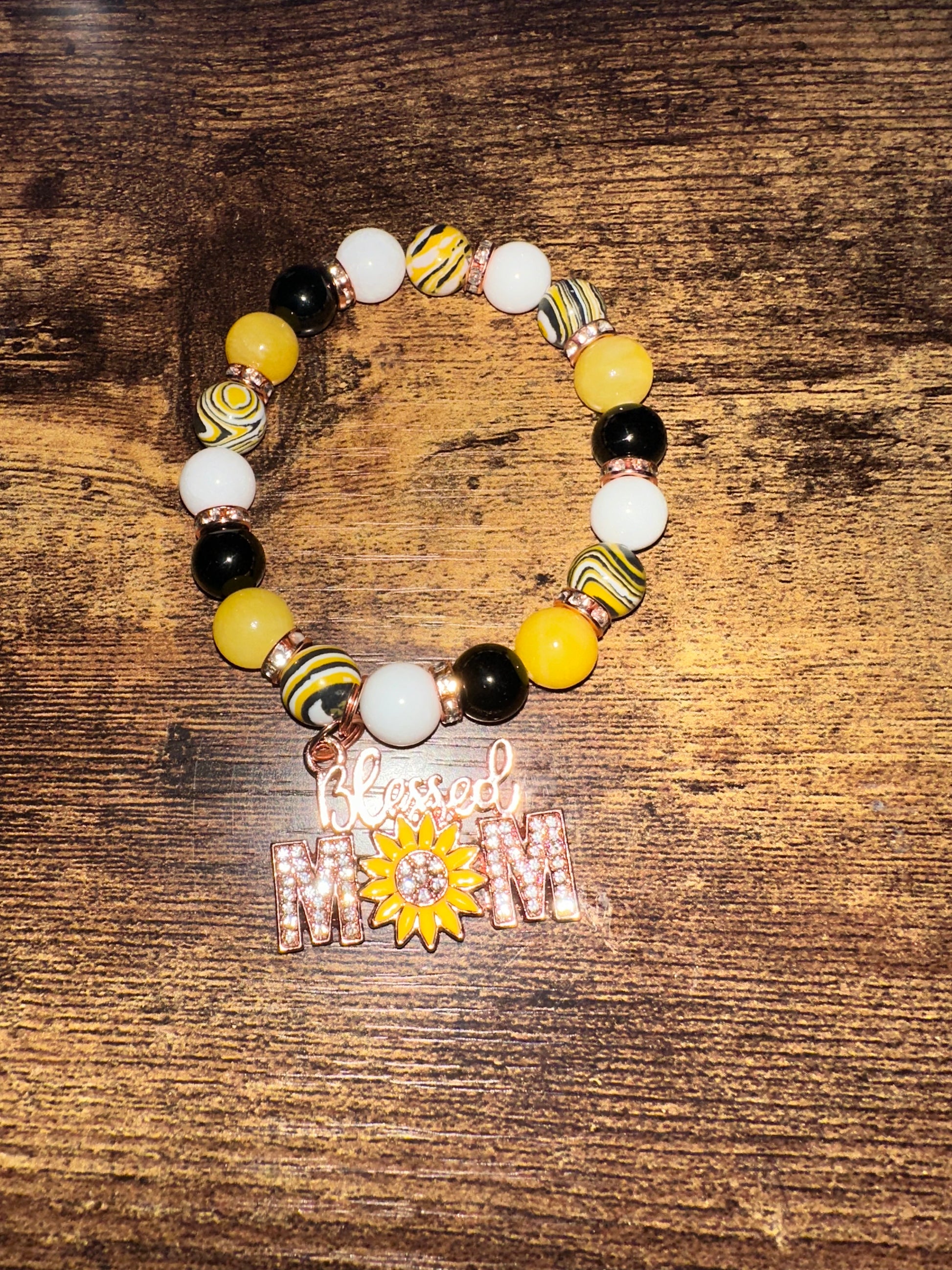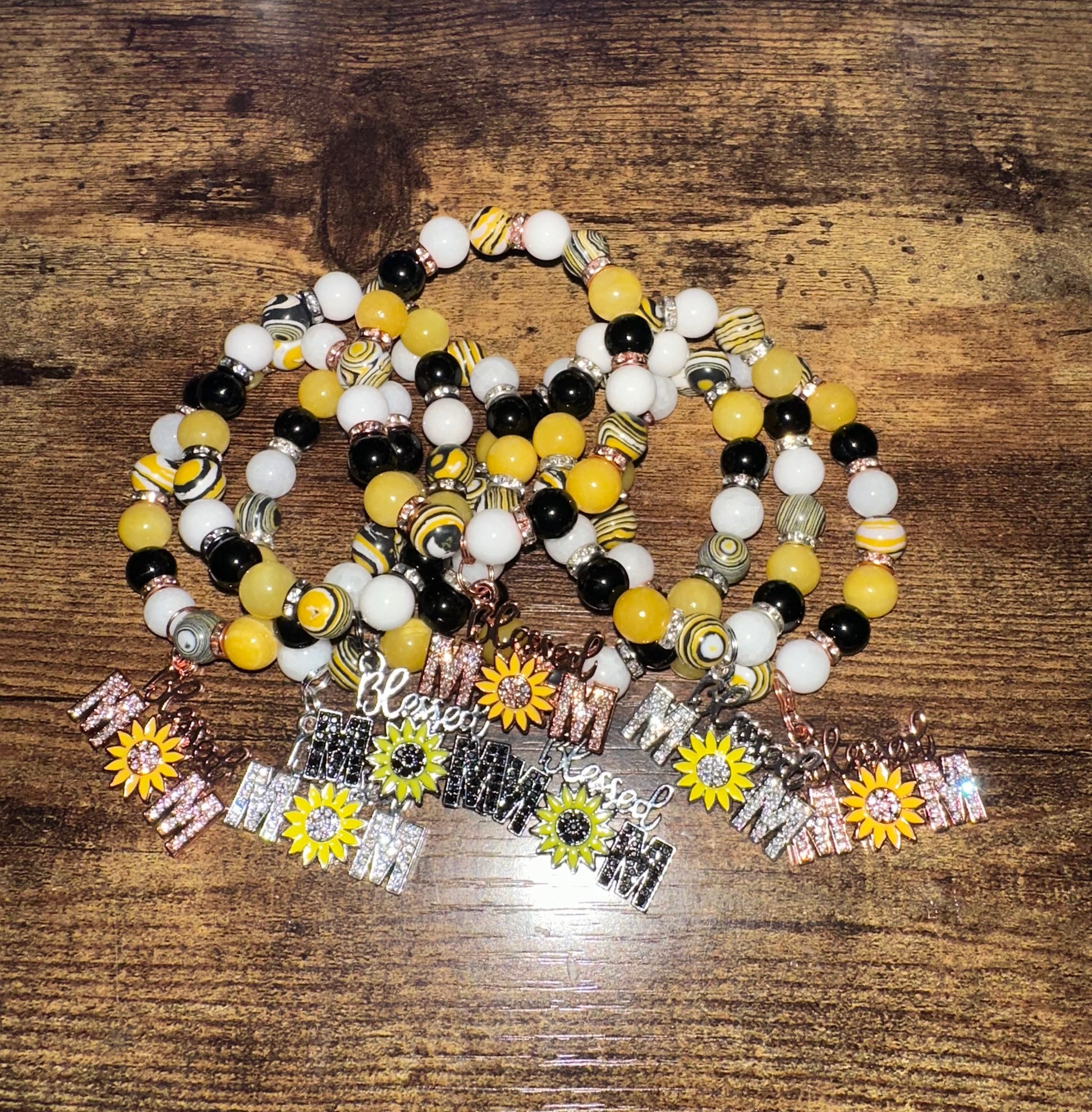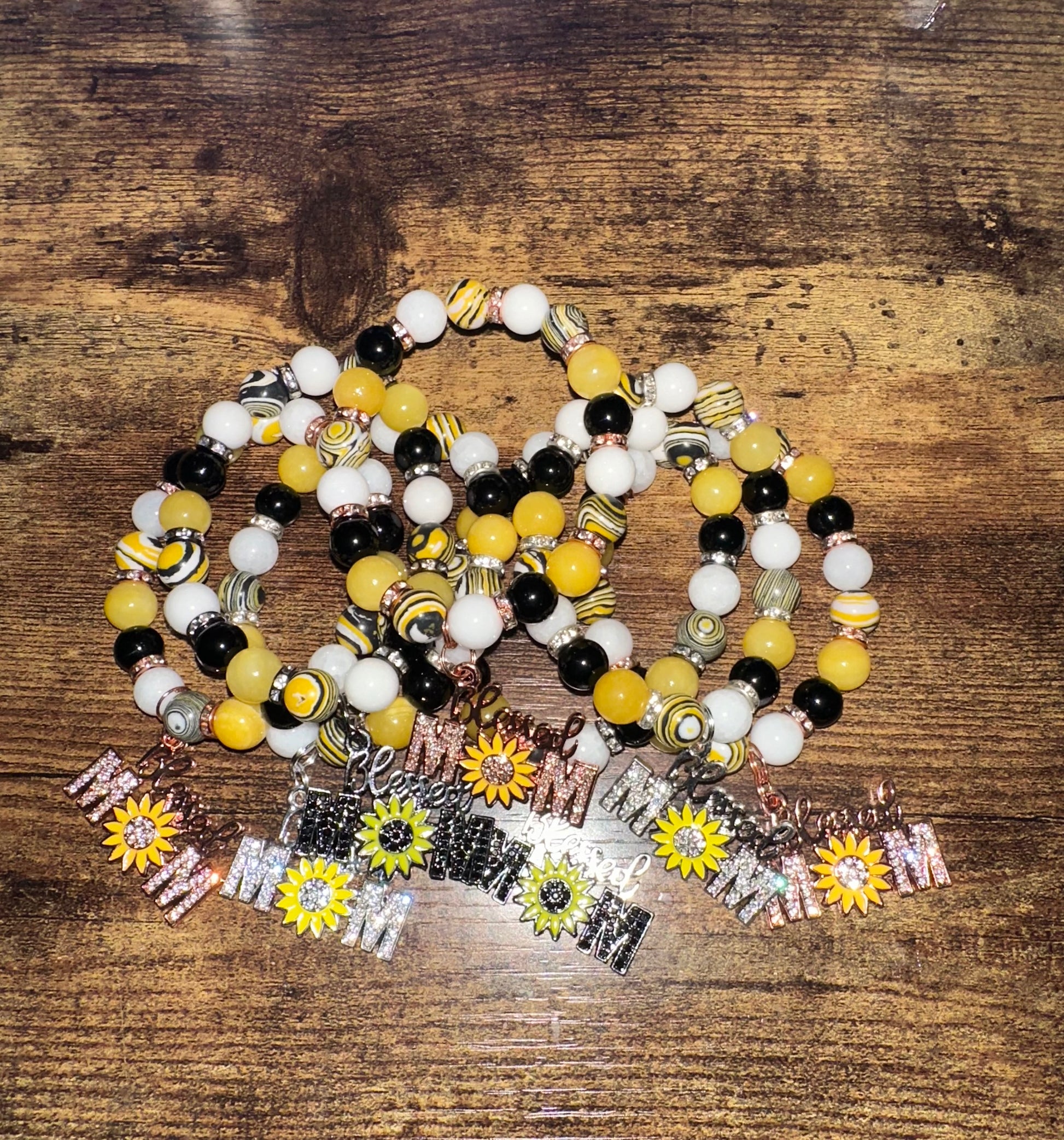 Black white, and multicolored gemstones paired together. Charms are alloy. Beads are 10mm